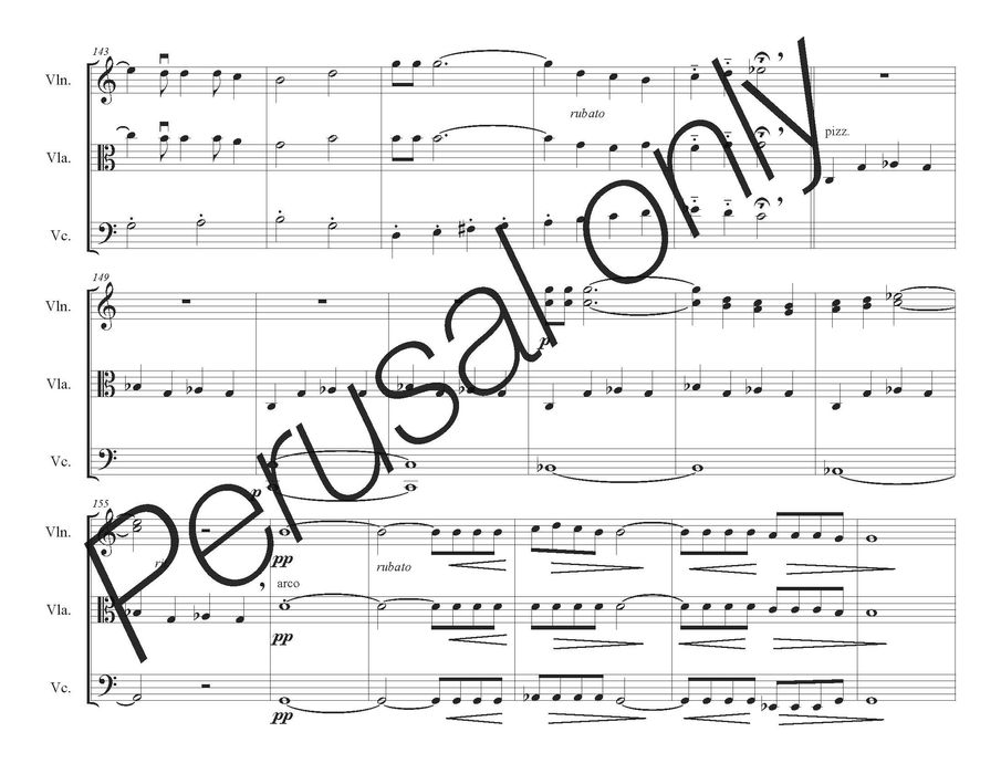 Nostalgia was commissioned by Crossing Borders Music to honor Jean Baptiste Pointe du Sable, original settler of what is now known as the city of Chicago. This very accessible string trio (for violin, viola and cello) is a one movement piece based on the (musical) name of its honoree, Jean Baptiste Pointe du Sable.