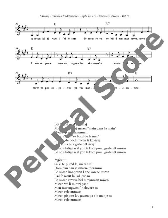On the other hand, musical notations (e.g., moderato, chorus, intro, reprise, bridge, ad libitum, etc.) are not written in Creole.